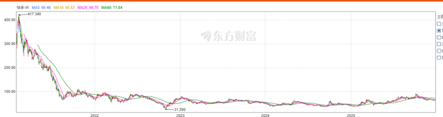 12月23日,快手股价跌3.52%,收于64.35港元。拉长时间线港元高点后,股价开始震荡走低、持续跌破发行价。截至2025年12月29日,报收63.8港元,较发行价累跌44.52%,较高点跌幅达84.71%。