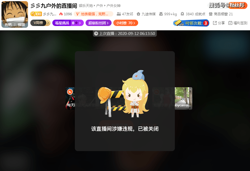 谁知,在12月18日凌晨,斗鱼户外主播“三三九户外”的直播间又出现了“该直播间涉嫌违规,已被关闭”的提示。