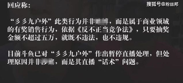 此后,虽然斗鱼直播平台也曾出面回应,其行为并不存在涉赌,而是属于商业领域的有奖销售行为。而该主播之后被封禁停播,其封禁原因只是因为“话术”问题。