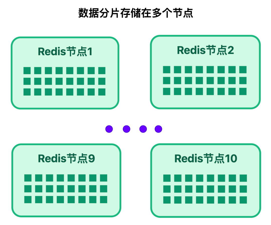 再把这些分片分散到 10 个 Redis 节点上,每个节点负责 10 个分片;