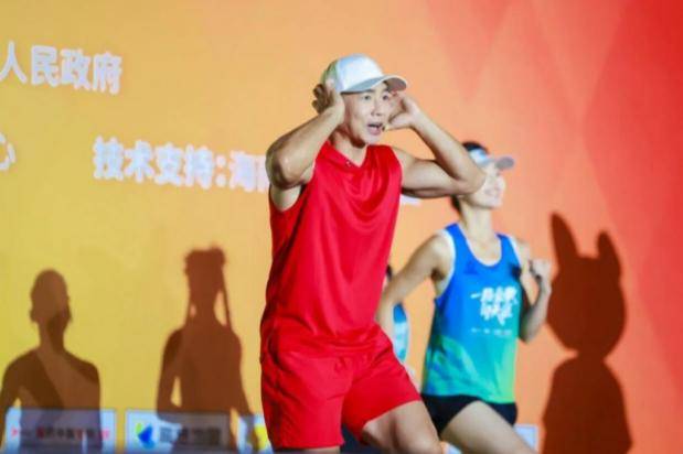 那天,他穿了一身红色的运动服,精神抖擞地站上跑道,带领1.4万名跑者做赛前热身,还亲自下场,用2小时09分的成绩,完成了半程马拉松。